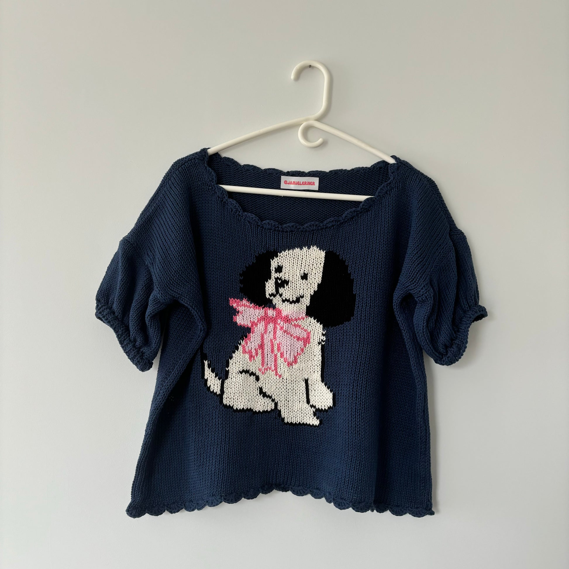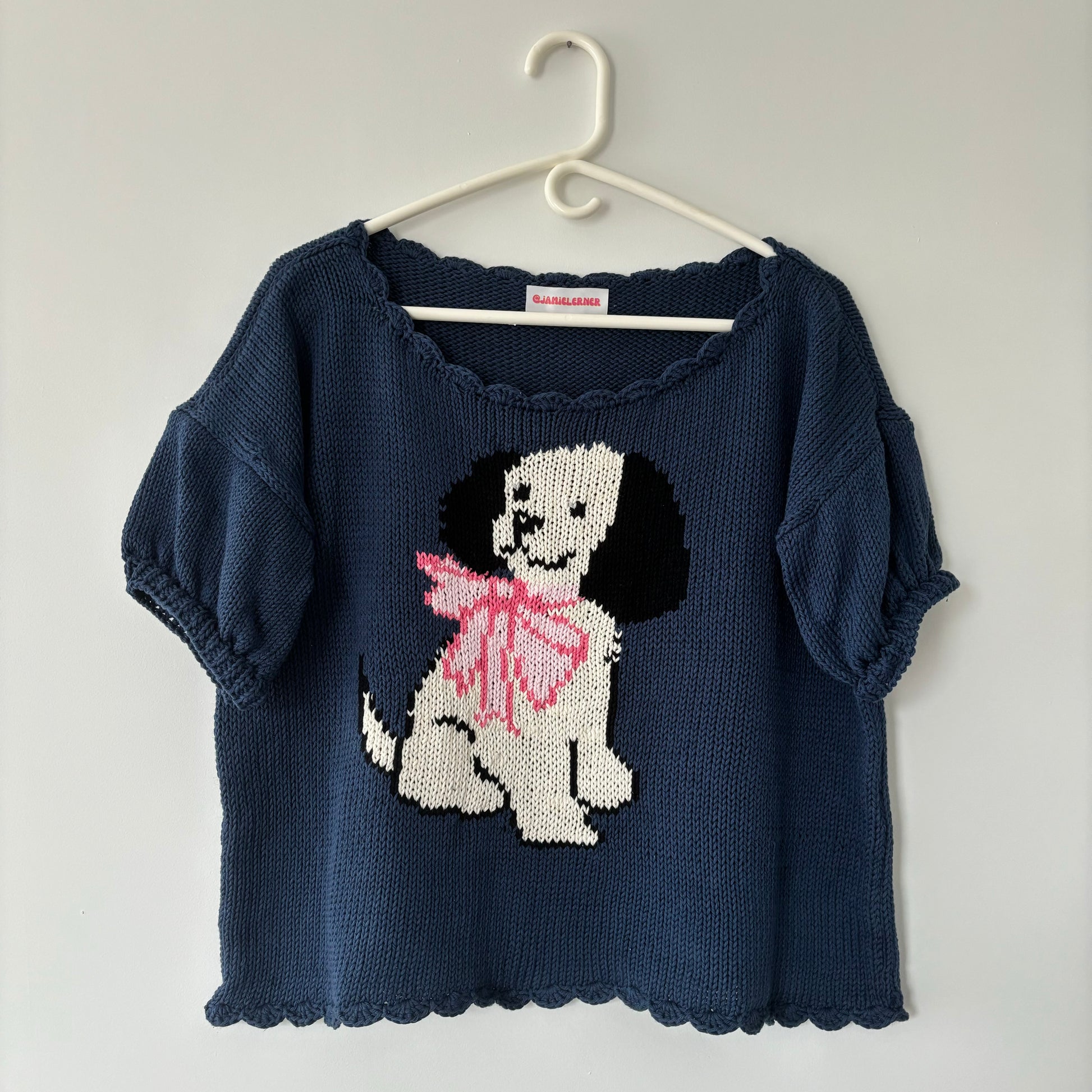 Navy Puppy Short Sleeve Sweater