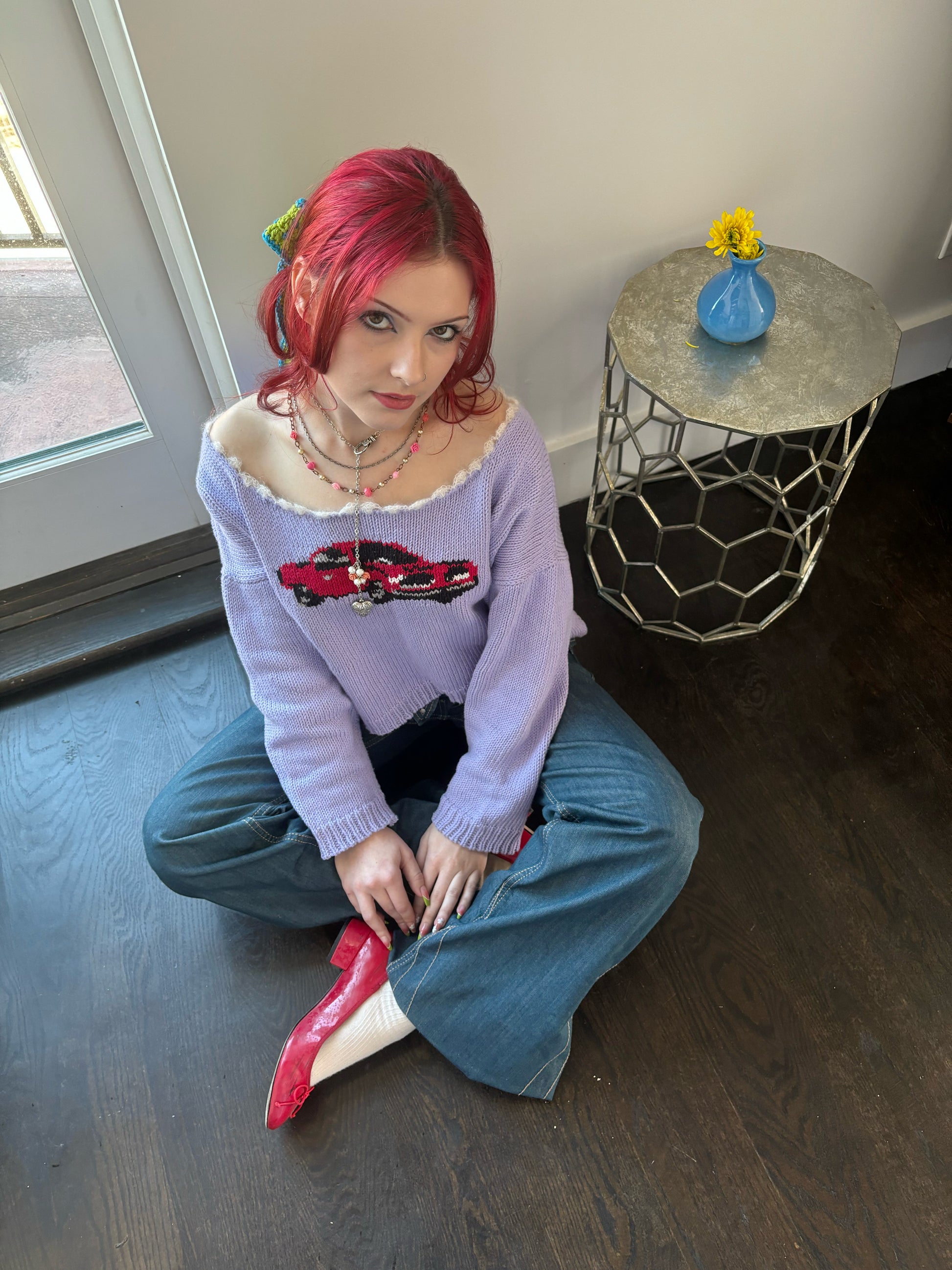 Pale Lilac Sweater, Pillar Red Car